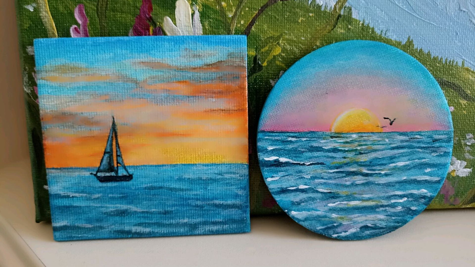 Вы сможете выбрать один из трех форматов холстов (квадрат 10×10, круг 7,5 и прямоугольник 6×8 см), сюжет и создать небольшой подарок, который можно подарить или оставить дома.